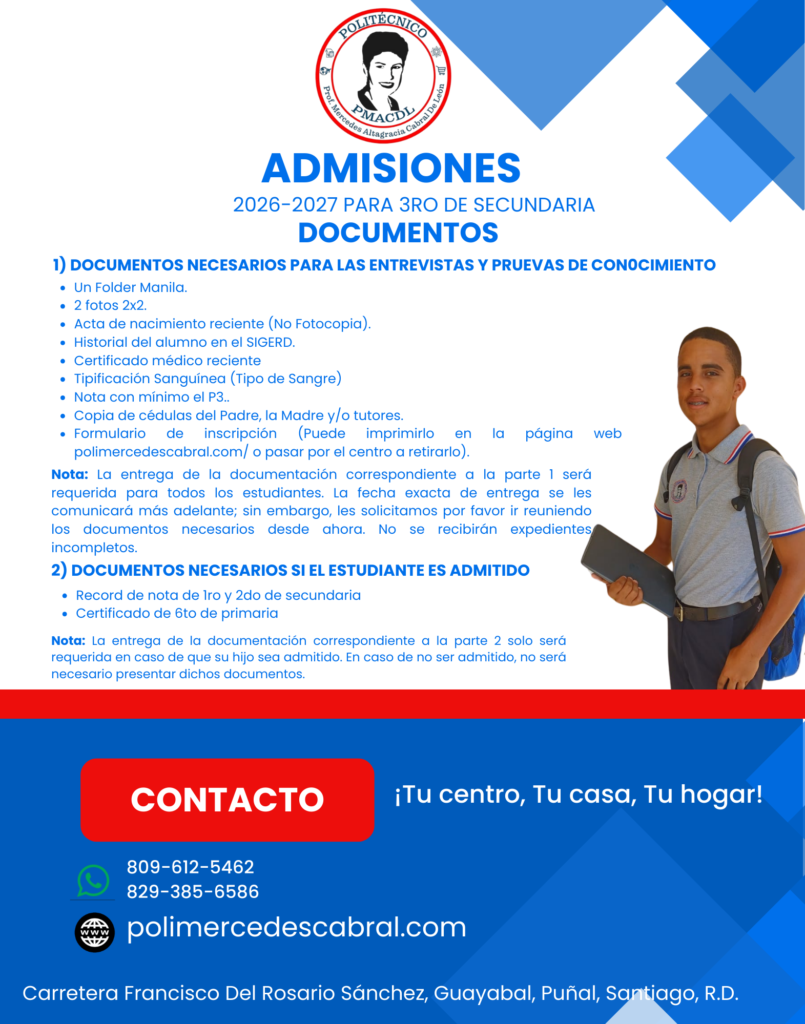 DOCUMENTOS NECESARIOS PARA EL PROCESO DE ADMISIÓN